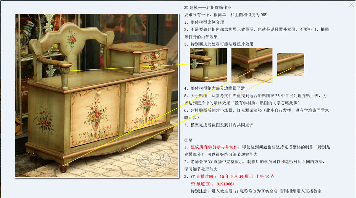 2、 老师会在YY直播中完整演示,制作后的学员可以和老师对比不同的方法,学习细节处理能力