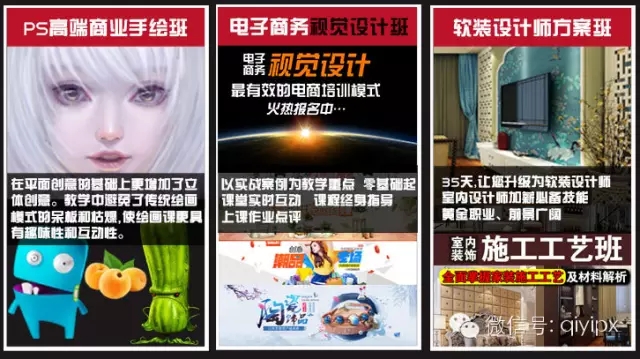 课程内容:除了专业知识,更注重学员的实用性及可操作性。学员将所学的内容直接运用的自己的店铺或者企业工作中的应用。行业案例的分享与总结,以及在网店中电商高级视觉效果制作技巧及经验的分享。教给学员的是技能及经验,不单单是知识点的介绍。